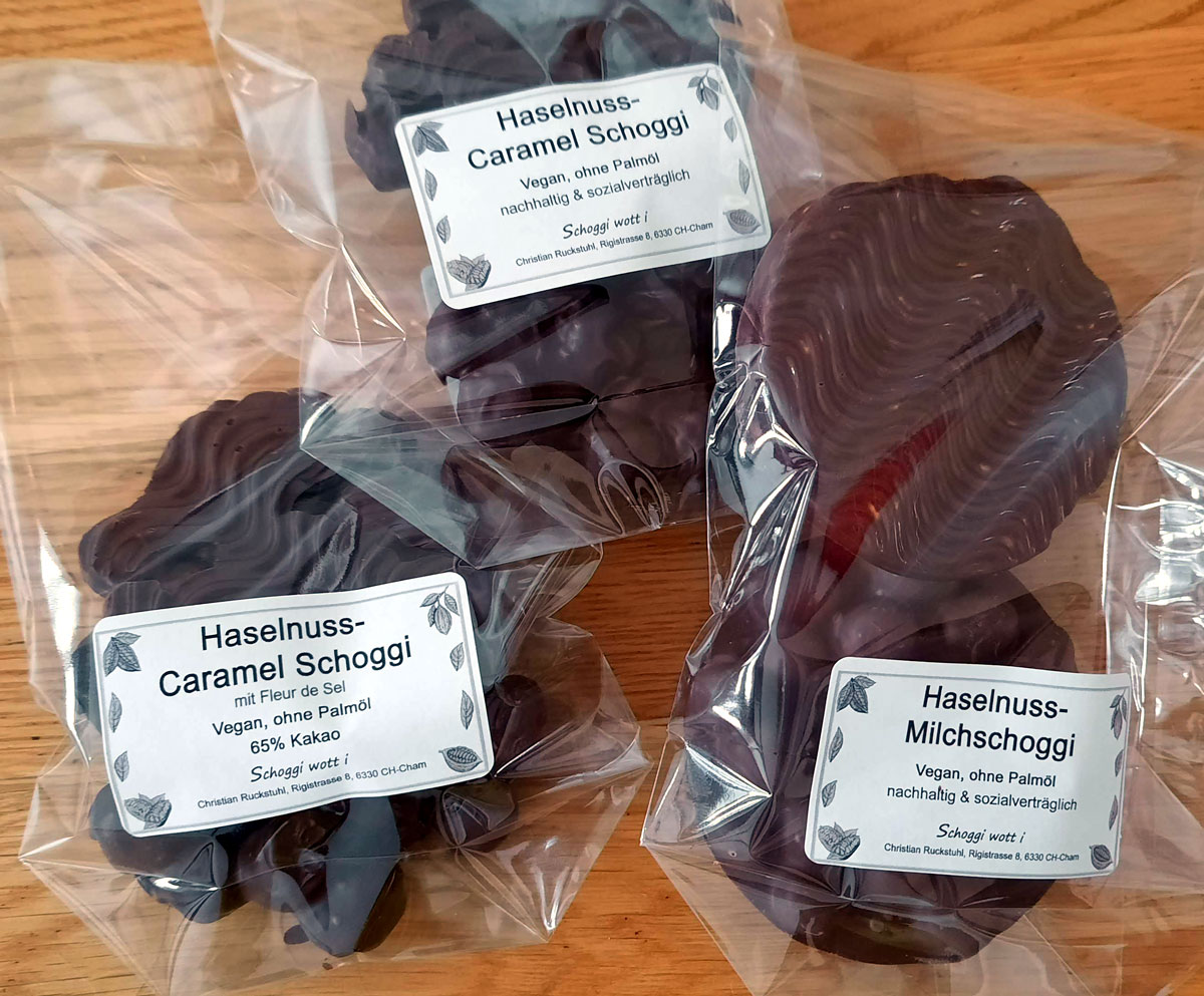 Zutaten: Haselnüsse 50%, Zucker, Kakaobutter, Kakaomasse, Kokosfett, Sojalezithin, Vanille